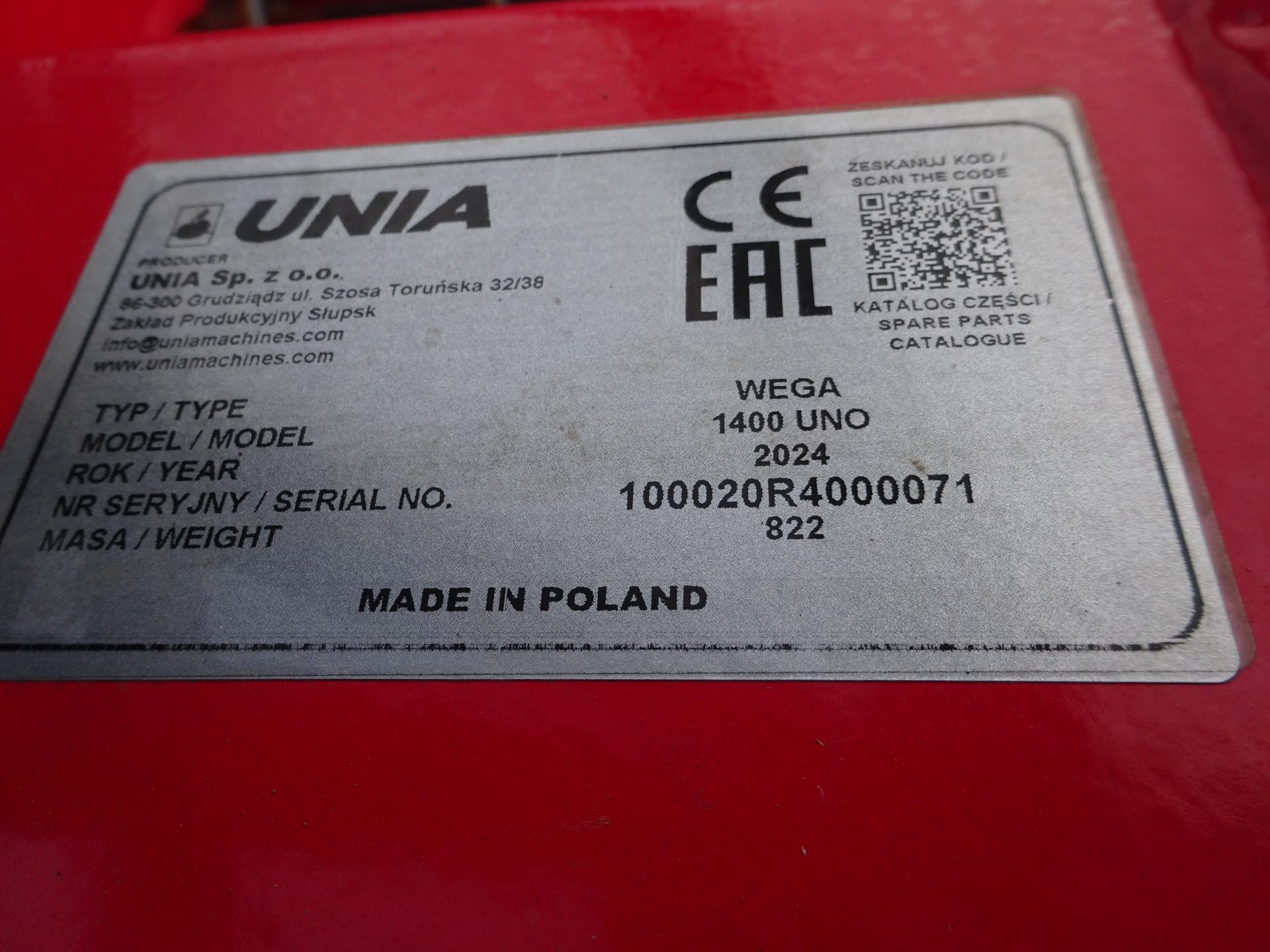 UNIA Wega 1400 mit Querband, Vorführmaschine